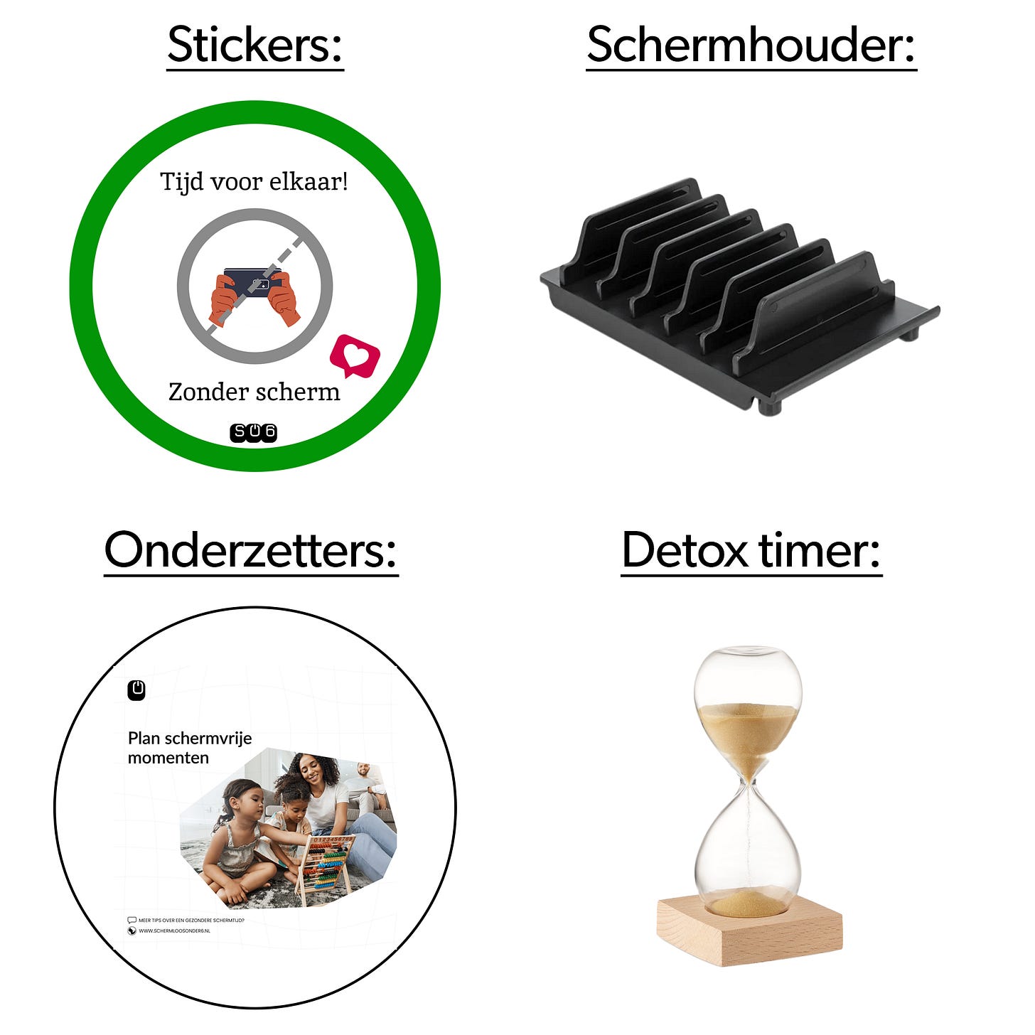 Betrek je kinderen actief: De stickers en de detox timer maken het voor kinderen aantrekkelijk en begrijpelijk om schermvrije regels te volgen.